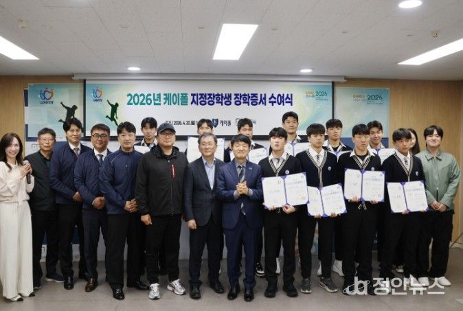 정안뉴스 안정주 기자 | 안양시 인재육성재단은 지난 20일 케이폴의 기부금으로 선발된 2026 케이폴 지정장학생 장학증서 수여식을 개최했다.