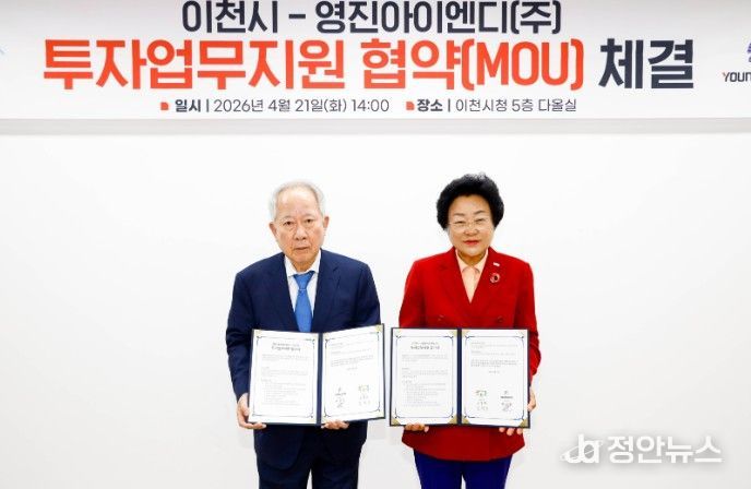 정안뉴스 안정주 기자 | 이천시가 21일 반도체 공정 핵심 설비 기업인 영진아이엔디㈜와 150억 원 규모의 투자업무지원협약을 체결하고, 안정적인 공장 증설을 위한 행정 지원에 나선다.