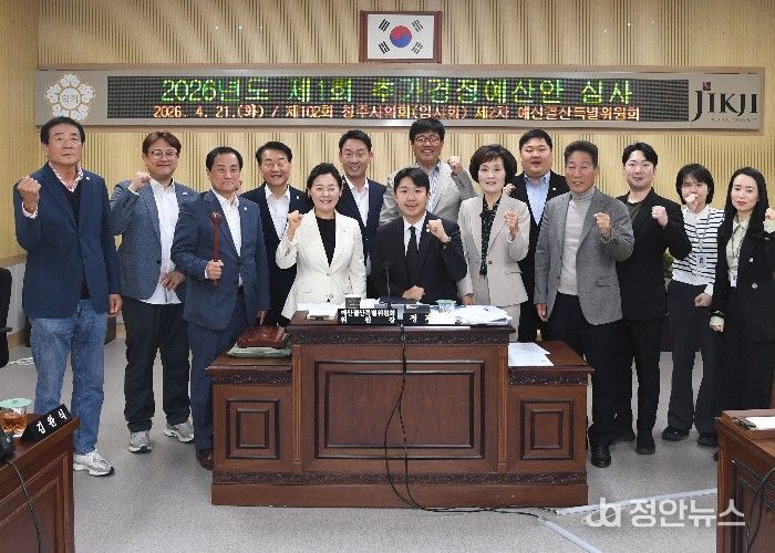 정안뉴스 안정주 기자 | 청주시의회 예산결산특별위원회는 20일, 21일 이틀에 거쳐 제102회 청주시의회(임시회) 회기 중 2026년 제1회 추가경정예산안을 심사했다.