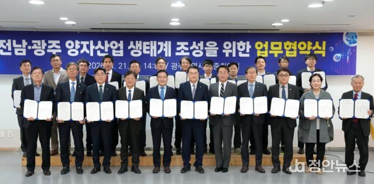 정안뉴스 안정주 기자 | 전라남도와 광주광역시가 미래 전략산업인 양자산업 육성을 위해 손을 맞잡고 지·산·학·연이 함께하는 협력체계를 구축, 정부 공모사업 유치와 지역 양자산업 생태계를 조성하기로 했다.