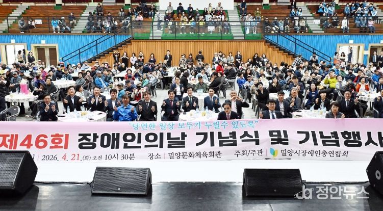 정안뉴스 김재홍 기자 | 경남 밀양시는 21일 밀양문화체육회관에서 밀양시장애인총연합회(회장 김수현) 주관으로 ‘제46회 장애인의 날’ 기념행사를 개최했다.
