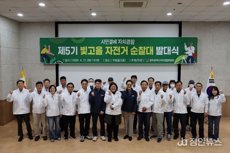 정안뉴스 안정주 기자 | 광주광역시자치경찰위원회는 21일 시청 무등홀에서 ‘제5기 빛고을 자전거 순찰대’ 위촉식을 열고 공식적인 활동의 시작을 알렸다.