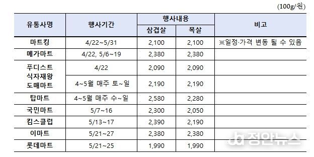 정안뉴스 안정주 기자 | 농림축산식품부는 4월 22일부터 5월 말까지 먹거리 물가안정을 위해 한돈 할인 지원을 추진한다고 밝혔다.