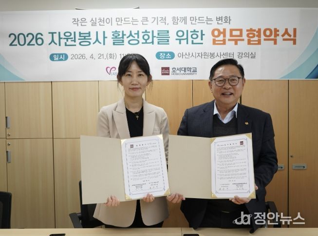 김리원 호서대학교 글로벌융합대학 미래융합스쿨 사회복지상담학과장은 “이번 협약으로 대학의 교육 자원과 지역사회의 자원봉사 현장이 유기적으로 연결되는 계기가 마련됐다”며 “앞으로도 다양한 세대가 함께 참여하는 자원봉사 모델을 구축해 따뜻한 아산시를 만드는 데 앞장서겠다”고 말했다.