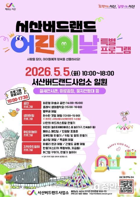 정안뉴스 안정주 기자 | 충남 서산시는 오는 5월 5일 ‘서산버드랜드 어린이날 특별프로그램’을 운영한다고 밝혔다.