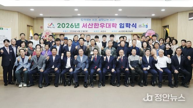 정안뉴스 안정주 기자 | 충남 서산시는 21일 음암면 축산종합센터 2층 대회의실에서 2026년 서산한우대학 입학식이 개최됐다고 밝혔다.