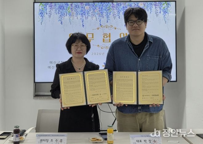 정안뉴스 안정주 기자 | 예산군청소년복지재단 소속 예산군청소년상담복지센터는 지난 20일 오후 2시 센터 3층 회의실에서 내:일마을 협동조합과 학교 밖 청소년 지원 강화를 위한 업무협약을 체결했다.