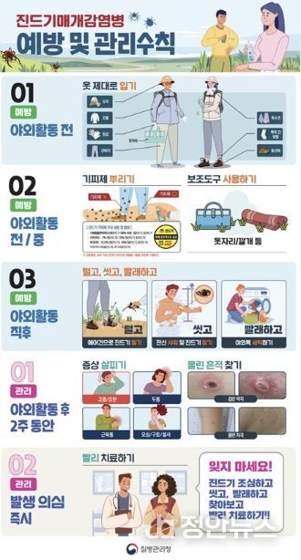 이형정 시흥시보건소장은 “봄철 농작업과 등산, 산책 등 야외활동이 늘어나는 시기인 만큼 진드기 예방수칙을 철저히 준수해야 한다”라며 “의심 증상이 있으면 신속히 의료기관을 방문해 조기 진단과 치료를 받는 것이 중요하다”라고 강조했다.