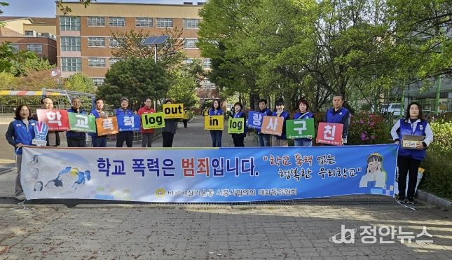 정안뉴스 안정주 기자 | 시흥시 바르게살기운동 매화동위원회는 지난 4월 21일 매화초등학교에서 학교 폭력 예방 캠페인을 전개했다.