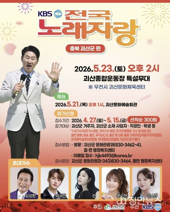 본선 녹화는 5월 23일 토요일 오후 2시 괴산종합운동장에서 개최되며 참가자들의 끼와 열정을 선보이는 무대와 함께 다채로운 축하공연이 펼쳐질 예정이다.