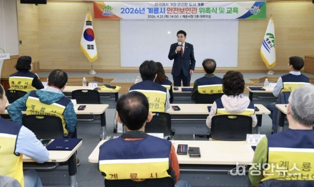 정안뉴스 안정주 기자 | 충남 계룡시는 21일 시청 대회의실에서 ‘2026년 계룡시 안전보안관 위촉식’을 열고 안전보안관 27명을 위촉했다.