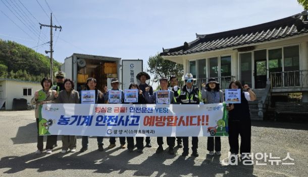이번 캠페인은 영농철을 앞두고 농기계 사용이 늘어나는 시기에 맞춰 교통사고를 예방하고 안전의식을 높이기 위해 마련됐으며, 광양시 관계자와 경찰 등 20명이 참여했다.
