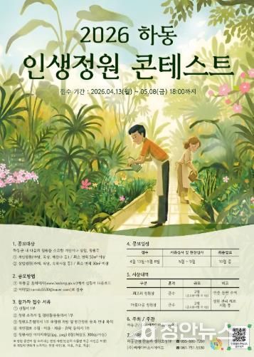 정안뉴스 김재홍 기자 | 하동군이 지역 내 아름다운 정원을 발굴하고, 일상생활 속 정원 문화를 확산하기 위한 ‘2026년 제2회 하동 인생정원 콘테스트’를 5월 8일까지 진행한다.