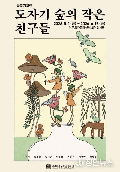 정안뉴스 안정주 기자 | 여주세종문화관광재단은 오는 5월 1일부터 6월 19일까지 여주도자문화센터 2층 1전시실에서 2026년 상반기 특별기획전 '도자기 숲의 작은 친구들'을 개최한다고 밝혔다.