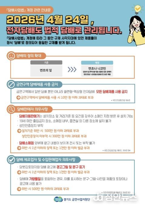 이번 점검은 2026년 4월 24일부터 시행되는 '담배사업법' 개정에 따른 조치로, 액상형 전자담배 등 신종 담배 제품이 처음으로 본격적인 법적 관리 대상에 포함되면서 점검 범위가 크게 확대됐다.
