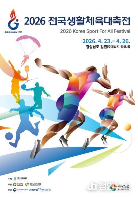 정안뉴스 김재홍 기자 | 경상남도는 4월 23일부터 26일까지 4일간 김해시를 주개최지로 도내 15개 시군에서 ‘2026 전국생활체육대축전’을 개최한다고 밝혔다.
