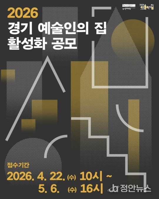 정안뉴스 안정주 기자 | 경기문화재단 경기 예술인의 집은 예술인의 창작활동과 교류를 활성화하기 위한 '2026 경기 예술인의 집 활성화 공모'를 추진한다. 이번 공모는 ‘예술인의 집’을 기반으로 다양한 예술활동이 자연스럽게 이어지는 열린 공간을 조성하고자 마련됐다.