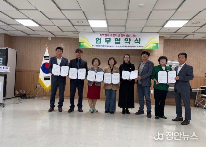 정안뉴스 안정주 기자 | 이천시 중리동은 21일 중리동행정복지센터에서 지역사회와 학교가 함께하는‘지역연계 초등학생 행복성장 지원 협약식’을 개최하고, 지역 아동의 건강한 성장과 교육복지 향상을 위한 협력체계를 구축했다.