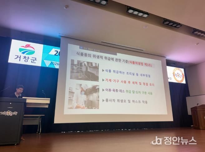 정안뉴스 김재홍 기자 | 거창군은 지난 20일부터 21일까지 이틀간 농업기술센터 미래농업복합교육관에서 일반음식점 영업주를 대상으로 ‘2026년 일반음식점 기존영업주 위생교육’을 실시했다.