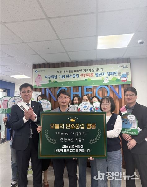 정안뉴스 안정주 기자 | 인천광역시가 4월 22일‘지구의 날’을 맞아 식판 위 음식물을 남기지 않는 작은 실천으로‘2045 탄소중립’ 실현에 속도를 낸다.
