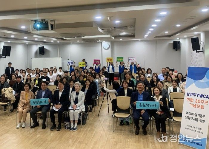 정안뉴스 안정주 기자 | 남양주시는 지난 21일 와부도서관에서 (사)남양주YWCA가 창립 30주년을 맞아 ‘여성이 살기 좋은 남양주시’를 주제로 포럼을 개최했다고 22일 밝혔다.