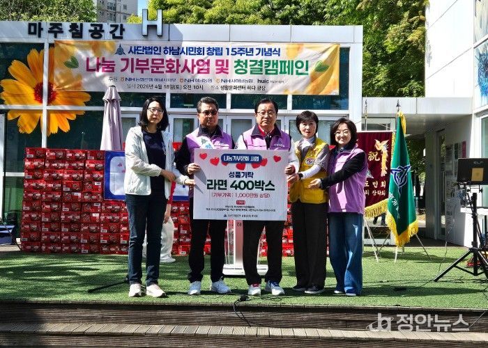 정안뉴스 안정주 기자 | 사단법인 하남시민회는 취약계층 지원을 위해 회원들과 따뜻한 마음을 모은 라면 30박스를 하남시미사강변종합사회복지관에 전달했다.