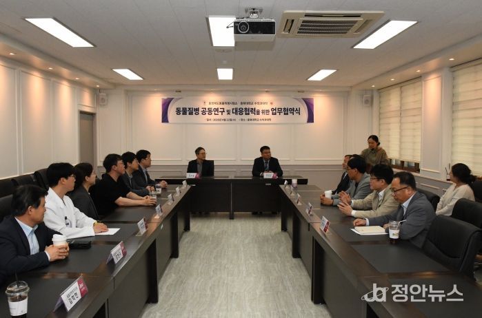 정안뉴스 안정주 기자 | 충청북도동물위생시험소와 충북대학교 수의과대학은 22일 충북대학교에서 동물질병 공동연구 및 대응을 위한 업무협약(MOU)을 체결하고 가축전염병 대응 능력을 고도화하겠다고 밝혔다.
