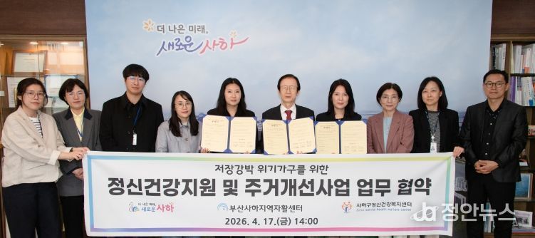 정안뉴스 안정주 기자 | 부산 사하구는 지난 17일 사하구정신건강복지센터(센터장 최경아), 부산사하지역자활센터(센터장 이해중)와 ‘저장강박 위기가구 지원을 위한 업무협약’을 체결했다.