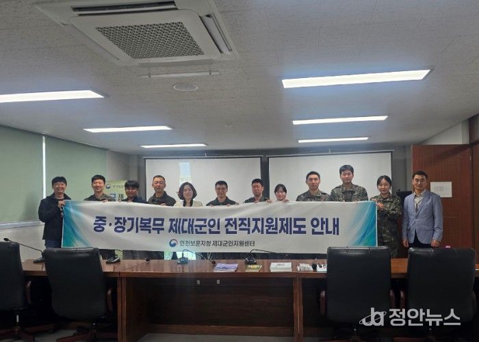 정안뉴스 안정주 기자 | 국가보훈부 인천보훈지청 제대군인지원센터는 4월 22일 육군 제17보병사단 5년 이상 복무한 중장기복무 전역예정군인을 대상으로 ‘제대군인 전직지원 사업 홍보를 위한 찾아가는 군부대 순회교육’을 실시 했다. ‘찾아가는 군부대 순회교육’은 제대군인지원센터가 각 군부대와의 협조를 통해 교육 접근성과 참여율을 높이기 위해 군부대 내에서 직접 제대예정군인 전직지원제도와 국가보훈제도를 소개하는 프로그램이다.