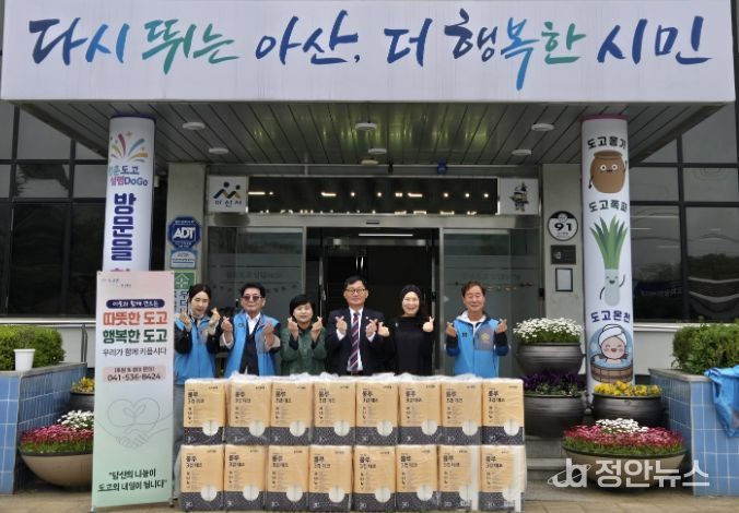 정안뉴스 안정주 기자 | 아산시 도고면 행복키움추진단는 22일 나눔터봉사단으로부터 생활필수품인 화장지 30롤 30개를 후원받았다.