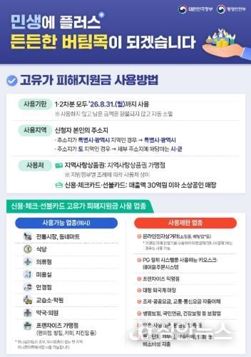정안뉴스 안정주 기자 | 공주시는 고유가·고환율·고물가로 인한 시민 생활 부담을 완화하기 위해 ‘고유가 피해지원금’을 오는 27일부터 지급한다고 밝혔다.