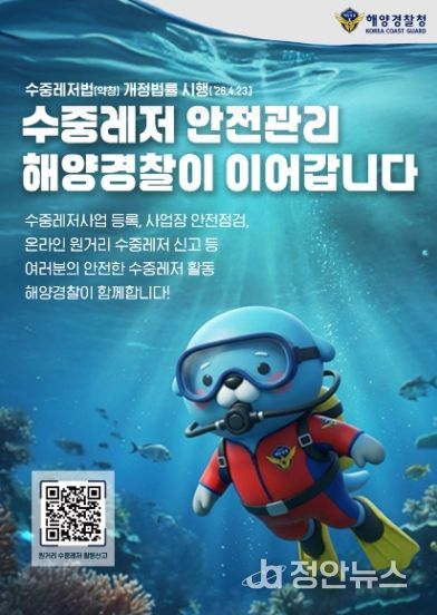 정안뉴스 안정주 기자 | 중부지방해양경찰청은 「수중레저활동의 안전 및 활성화 등에 관한 법률」(약칭. 수중레저법)을 시행(4.23.)하며 수중레저 안전관리를 강화한다고 밝혔다.