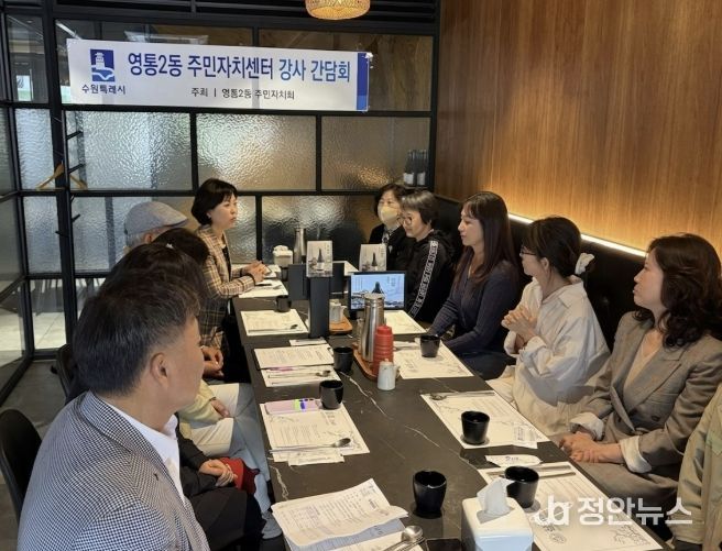 정안뉴스 안정주 기자 | 수원시 영통구 영통2동은 지난 22일 영통2동 주민자치회가 주민자치센터 프로그램 운영과 관련한 다양한 의견을 수렴하고, 보다 내실 있는 운영과 활성화 방안을 모색하기 위해 주민자치센터 프로그램 강사진과의 간담회를 개최했다고 밝혔다.