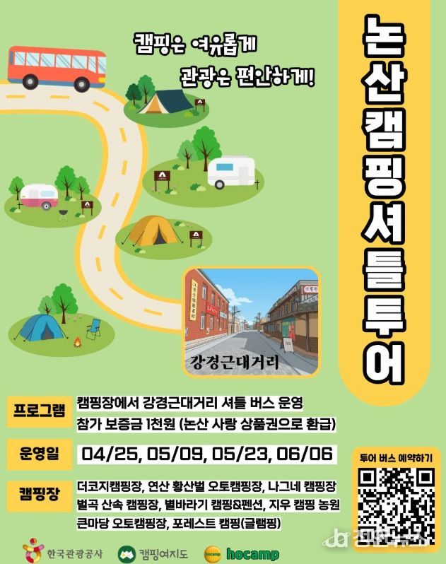 정안뉴스 안정주 기자 | 논산시는 4월 25일부터 강경근대거리의 관광 매력을 널리 알리고 체류형 관광 활성화를 위해 ‘논산 캠핑 셔틀버스’ 프로그램을 운영한다.