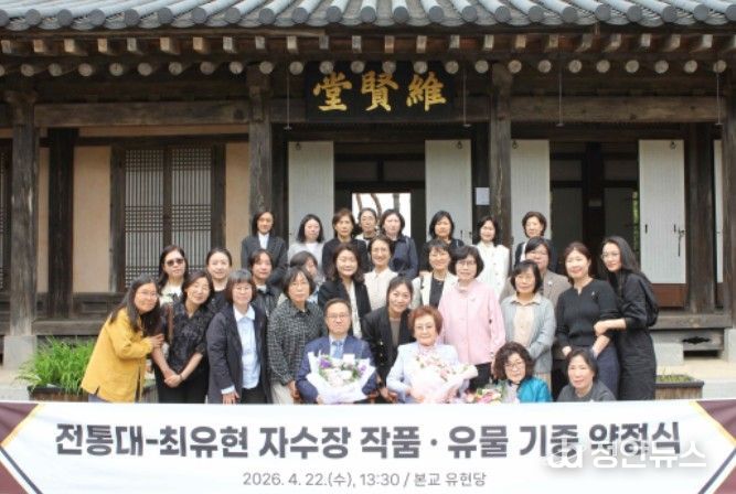 정안뉴스 안정주 기자 | 국가유산청 한국전통문화대학교는 4월 22일 오후 1시 30분 교내 유현당(충남 부여군)에서 전통 자수와 공예 교육·연구 활성화를 위해 국가무형유산 최유현 자수장 보유자로부터 직접 제작한 자수 작품 124건과 도자기·민속품 등 소장 유물 1,185건을 기증받는 약정식을 개최했다.