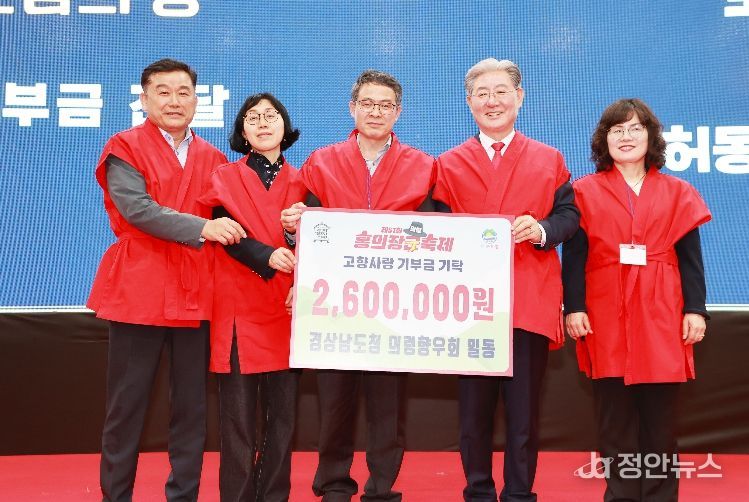 이번 행사에서는 ▲재부의령군향우회 조규성 회장 500만원, ▲재창원특례시의령군향우회 박종철 향우 500만원, ▲재대구경북의령군향우회 이헌주 향우 300만원, ▲재창원특례시의령군향우회(회장 이순자) 250만원, ▲경상남도청의령향우회(회장 허동식) 260만원 등 총 1,810만원이 모금됐다.