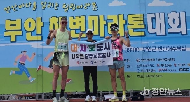 특히 이 대리는 이번 부안해변마라톤 시상대에서 “대중교통·자전거·도보(대·자·보) 도시 시작은 광주교통공사”라는 문구가 적힌 플랜카드를 들고 올라 시민들의 눈길을 끌었다. 개인의 성취를 넘어 소속 기관과 지역 정책을 알리기 위한 자발적인 퍼포먼스였다.