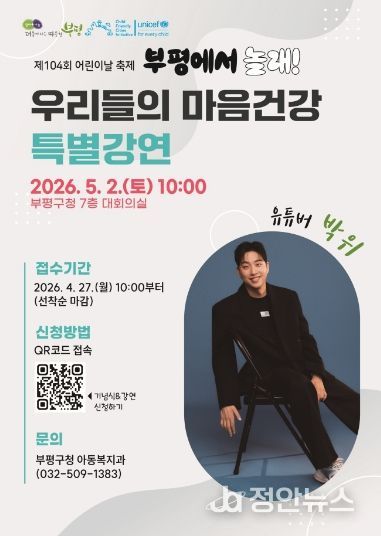 정안뉴스 안정주 기자 | 부평구는 제104회 어린이날을 맞아 오는 5월 2일 구청에서 어린이와 가족이 함께 즐길 수 있는 다채로운 행사를 개최한다고 밝혔다.