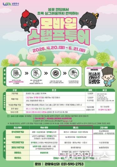 정안뉴스 안정주 기자 | 남양주시는 역사·힐링·건강·체험을 결합한 ‘2026년 상반기 모바일 스탬프투어’를 오는 6월 21일까지 운영한다고 23일 밝혔다.
