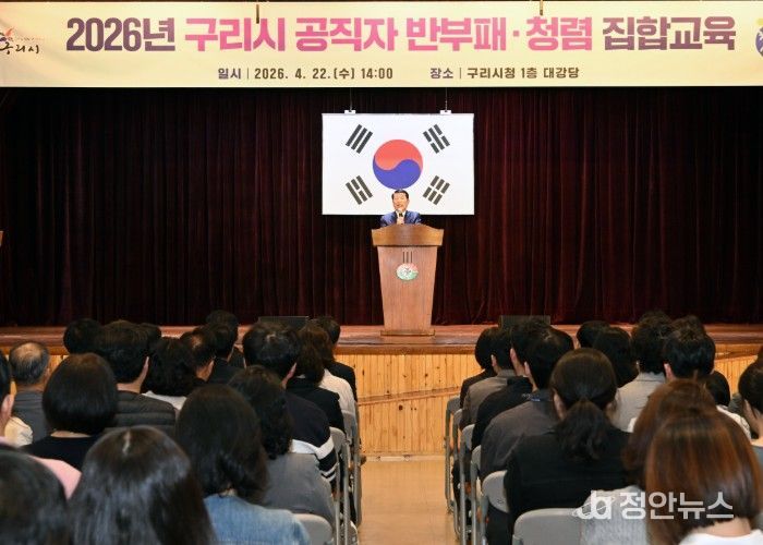 정안뉴스 안정주 기자 | 구리시는 지난 4월 22일 구리시청 대강당에서 5급 이상 간부 공무원과 신규·승진 공무원 등 170여 명을 대상으로 ‘2026년 구리시 공직자 반부패·청렴 교육’을 실시했다고 밝혔다.