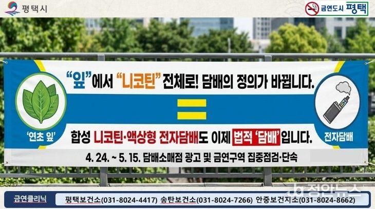 정안뉴스 안정주 기자 | 평택시가 24일부터 시행되는 『담배사업법』 개정안에 발맞춰, 그동안 규제 사각지대에 놓여있던 신종 전자담배를 포함한 모든 니코틴 제품을 대상으로 강력한 홍보와 집중 점검에 나선다.