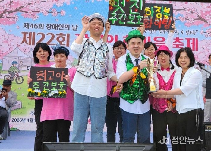 정안뉴스 안정주 기자 | 하남시장애인연합회가 주최한 제46회 장애인의 날 기념식 및 제22회 한마음 축제가 하남시장애인복지관에서 성황리에 열렸다. 이날 행사에서는 하남시장애인복지관 주간이용센터 발달장애인 이용인들로 구성된 ‘거북이와 토끼들’ 팀이 노래자랑에 참가해 총 11개 팀과 경연을 펼친 끝에 대상을 수상했다.