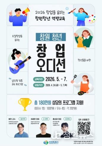 정안뉴스 김재홍 기자 | 창원특례시는 관내 청년들의 성공적인 로컬 창업을 지원하기 위해 ‘창원 청년 창업 오디션’ 참가자 20명을 오는 4월 24일부터 5월 7일까지 모집한다고 밝혔다.