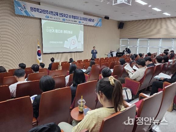 이를 위해, 도교육청은 23일 충남교육청과학교육원(아산)에서 ‘2026년 1학기 민주학교 담당자 및 학생 자치 교사 지원단 배움자리’를 열고 민주시민교육 역량 강화 방안을 모색했다.