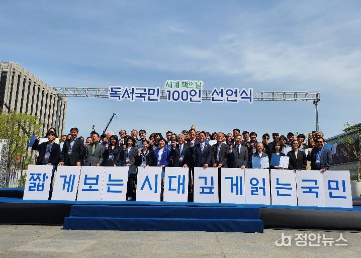정안뉴스 김재홍 기자 | 경상남도교육청이 23일 ‘세계 책의 날’을 맞아 서울 광화문광장에서 열린 ‘독서국민 100인 선언식’에 참여해 전국적인 독서 문화 확산에 힘을 보탰다.