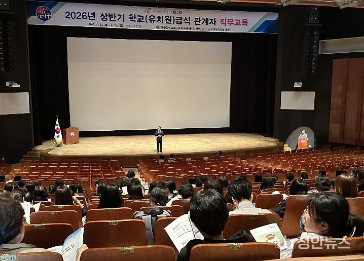 정안뉴스 안정주 기자 | 대구달성교육지원청은 4월 23일부터 24일까지 이틀간 대구학생문화센터 대공연장에서 대구지역 전체 영양(교)사·조리사·학교급식소위원(학부모) 등 1,902명을 대상으로 ‘학교급식 관계자 직무연수’를 개최한다.