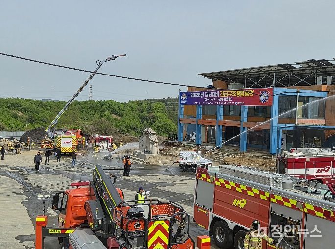 정안뉴스 안정주 기자 | 충남소방본부는 23일 청양군 정산면 소재 옛 칠갑산휴게소에서 ‘2026년 도 단위 긴급구조 종합 훈련’을 실시했다.
