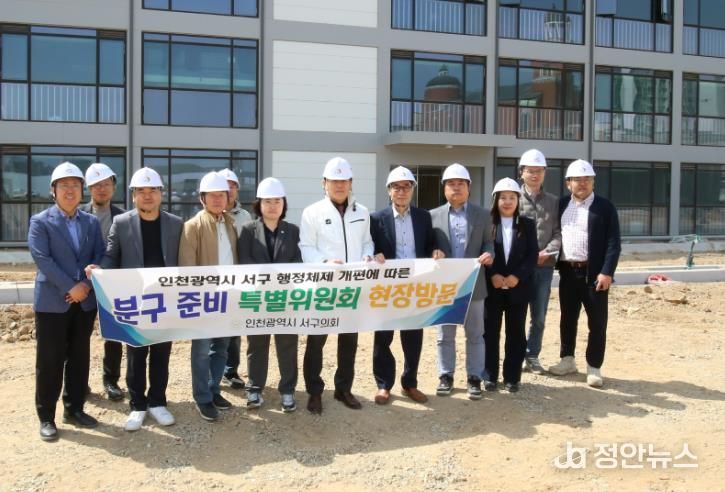 정안뉴스 안정주 기자 | 인천 서구의회 '행정체제 개편에 따른 분구추진 특별위원회'는 23일, 검단구 출범을 대비해 조성 중인 검단구 임시청사(서구 당하동 1325 일원)를 방문하여 시설 현황과 행정 준비 상황을 점검했다.