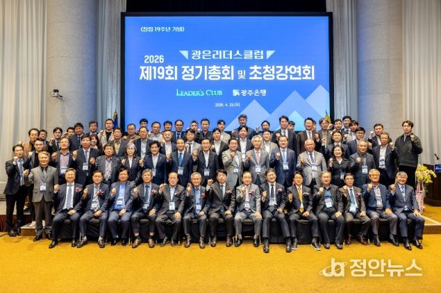 정안뉴스 안정주 기자 | 광주은행은 23일, 광주·전남 지역 중소기업 CEO 140여 명이 참석한 가운데 ‘2026 제19회 광은리더스클럽 정기총회 및 초청강연회’를 성황리에 개최했다고 밝혔다.