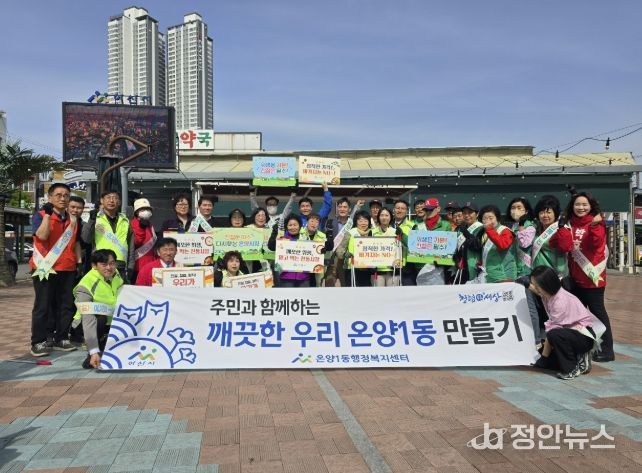 정안뉴스 안정주 기자 | 아산시 온양1동은 23일 성웅 이순신 축제를 앞두고 전통시장 상인회와 지역주민단체 등과 함께 ‘건전한 시장 문화 정착 캠페인’과 대청소를 실시했다.